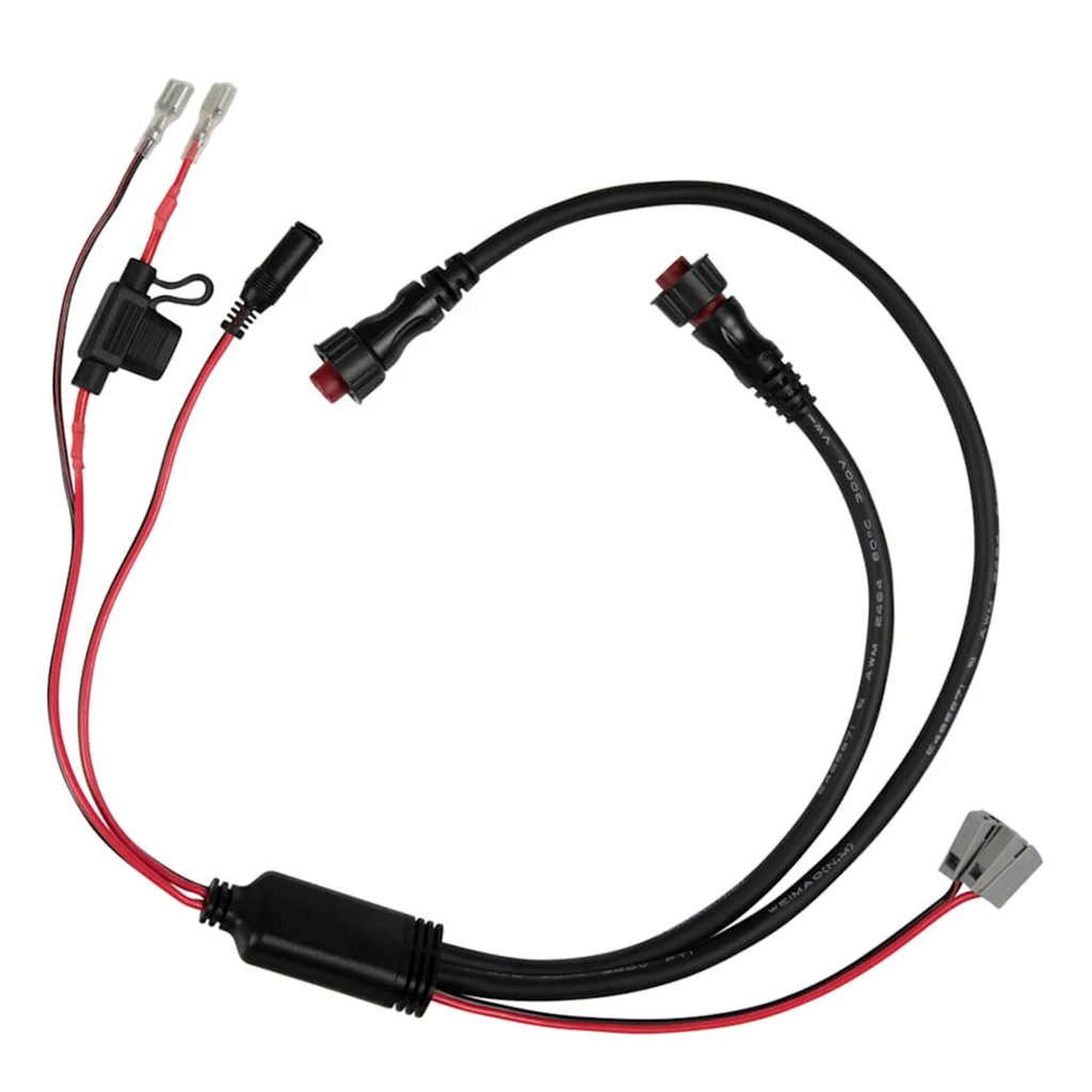 Connect your Panoptix LiveScope System and compatible ECHOMAP chartplotter to the battery of your compatible ice fishing bundle with this power cable. It also includes a convenient charge port plug and 10A fuse holder.