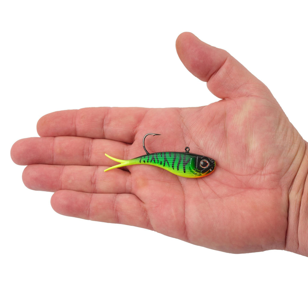 Soft, silent and lipless, the Power® Vibe can be fished year-round with a fast fall rate, high flash and a tight, crispy action. The single Fusion 19® hook makes the Power® Vibe a better choice for bottom, near bottom and weedier situations than traditional lipless hard baits. High-end finishes are perfectly adapted for all water types with colors ranging from natural to vibrant. When fishing vertical the Power® Vibe sits horizontal and hunts when gliding back to center. When casting the Power® Vibe, rip it off the bottom and either guarded on the fall, or allowed to fall on a slack line for a wandering aggressive action.