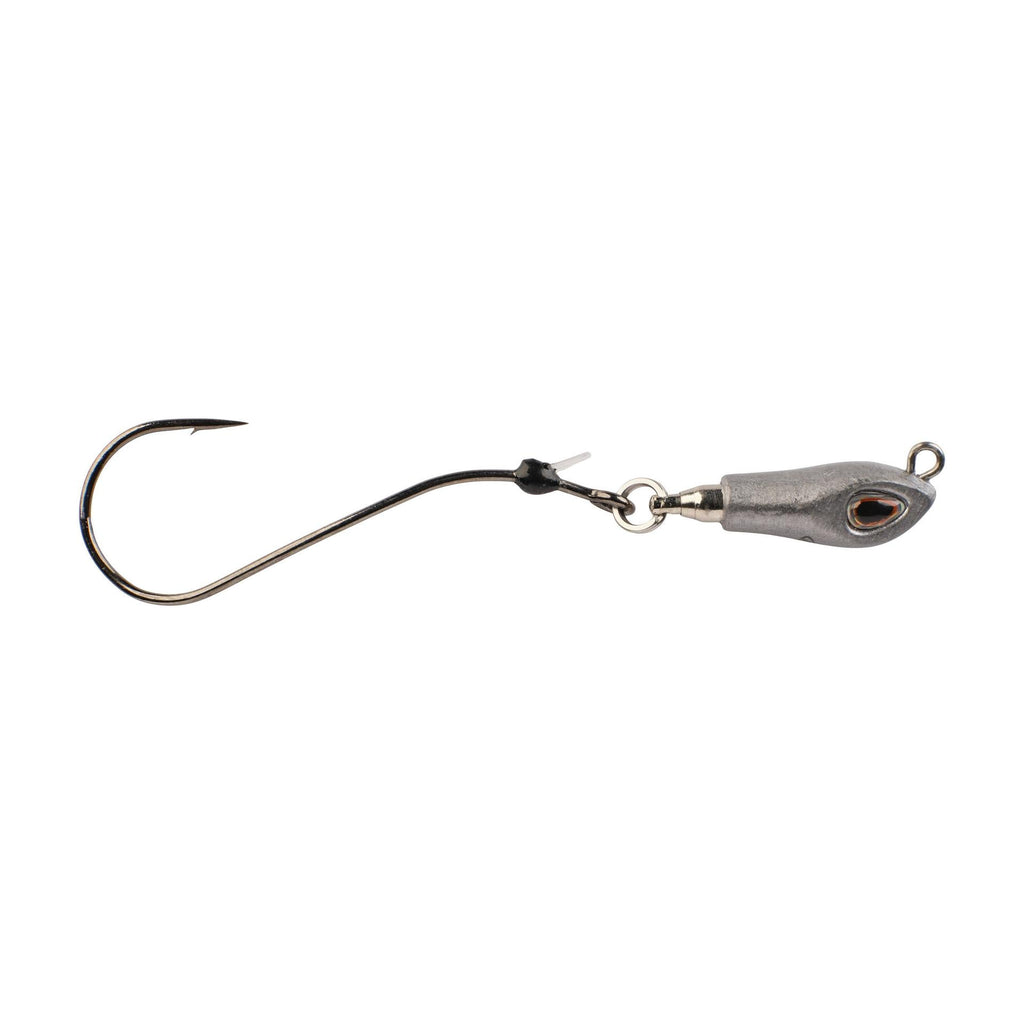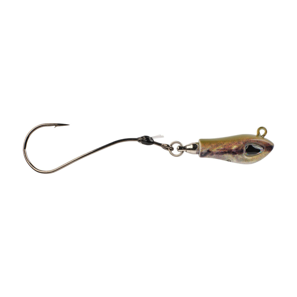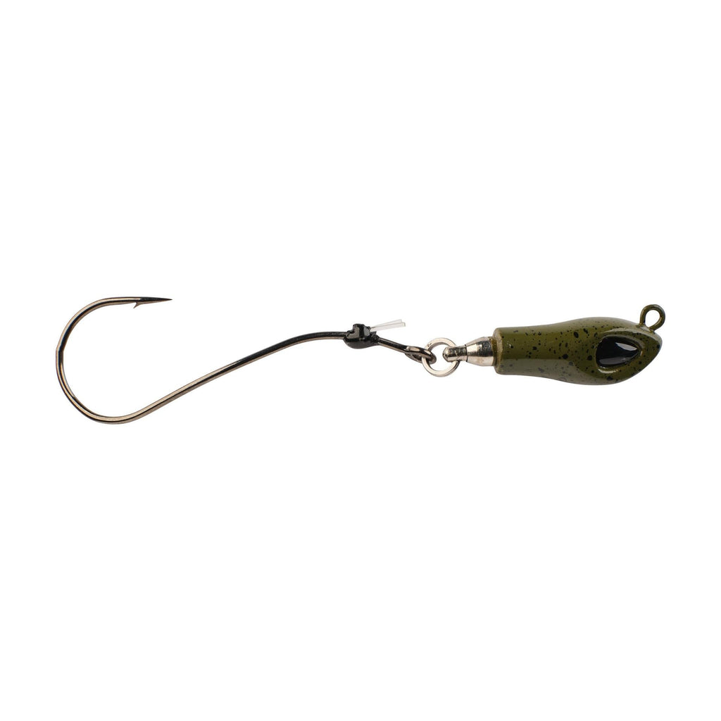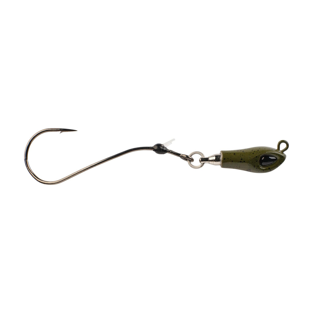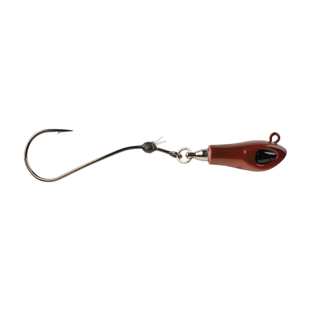 The Berkley® Rawler Jig fills a big need for anglers looking to present slow-turn crawler actions with precision casts and ultimate angler control. The head of the Rawler Jig is simple and sleek due to the stainless-steel ball bearing swivel perfectly integrated to minimize tangled casts and maximize angler control. We tipped the revolutionary Rawler head with our all-new Fusion 19® Helical Hook to deliver a free-turning action that immediately engages when it hits the water. Simply thread a live or Gulp! crawler up the shank of the helical hook and over the collapsible flouro-pronged bait keeper to no longer worry about loosing your bait when making bomb casts.