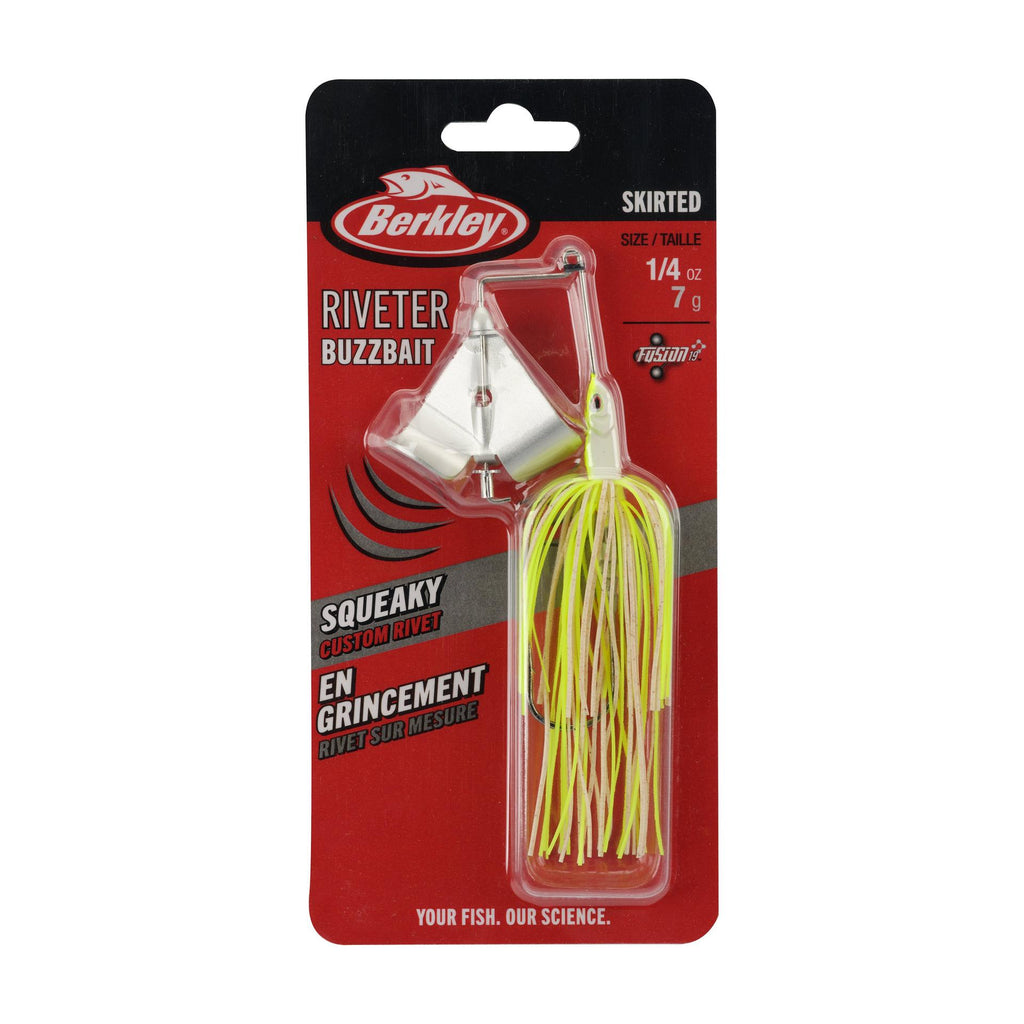 Entice big bites with the Berkley Riveter; so deafening, fish can’t help but notice. Berkley Labs has created the ultimate sound profile using a custom rivet and anodized blade, proven wire form and upgraded componentry; the Berkley Riveter will captivate bass with its unique squeak. The days of losing time on the water to break-in your buzzbait are over – Berkley has done the research to ensure there is no break-in period needed. Unleash the noise with the Berkley Riveter—performance-ready right out of the package.