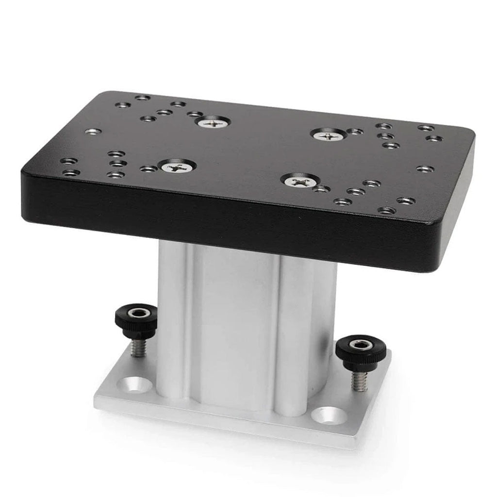 For surface or track mounting, this sturdy fixed base comes in 4" and 6" heights. The top plate is pre-drilled and tapped to allow mounting of a Cannon swivel base and downrigger (and other downrigger brands).