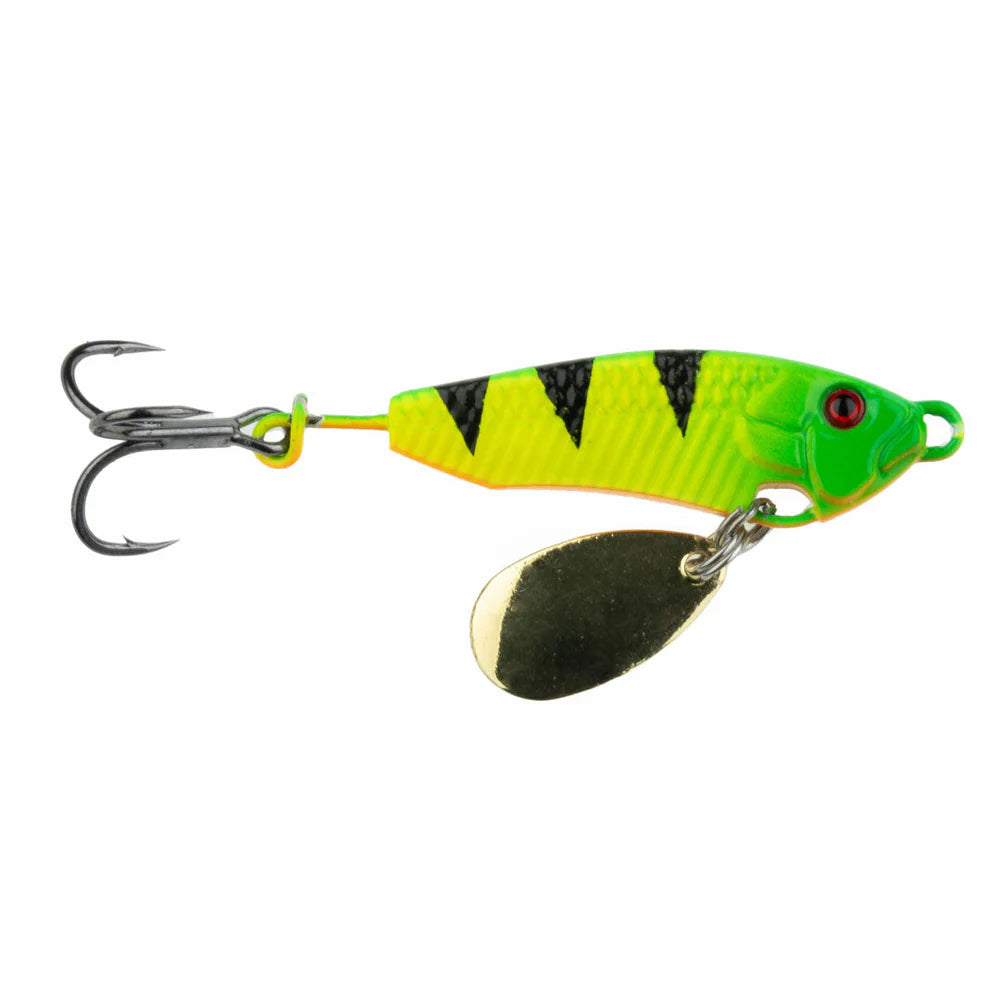 The premium zinc, UV coated body carries an Indiana blade mounted on the belly which swings loosely on the rise and fall to maximize both flash and vibration while creating the erratic action of a baitfish in trouble.