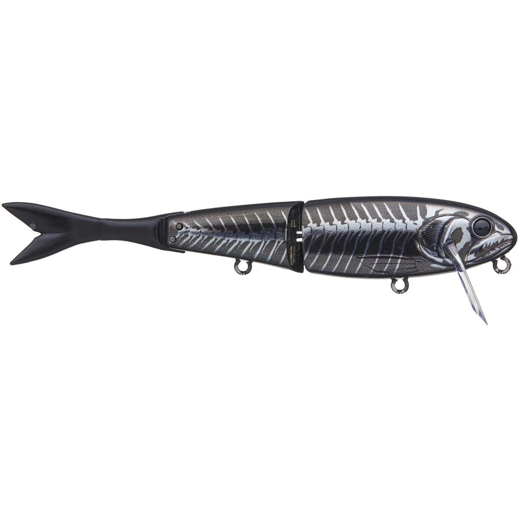 Crafted with a hard and durable single-jointed body and a soft plastic tail, this results in a swimbait that boasts a realistic profile and delivers irresistible motion to entice fish into striking. One of the standout features of the Blast Bone Jr. is its wide polycarbonate lip positioned under the nose. This design element allows the swimbait to be worked slowly near the water's surface, unleashing a powerful walk-the-dog action that attracts fish from a distance. The enticing movement and realistic presentation make it an irresistible target for bass and other predatory fish.