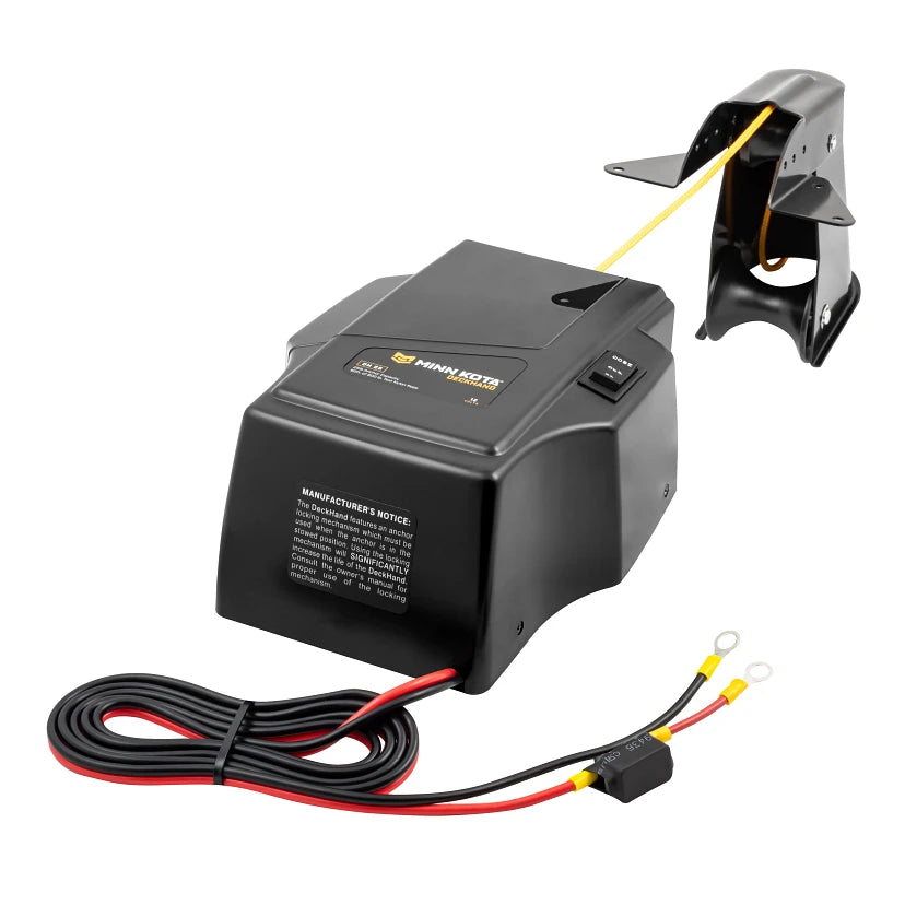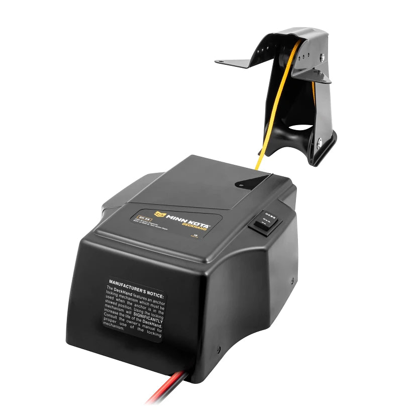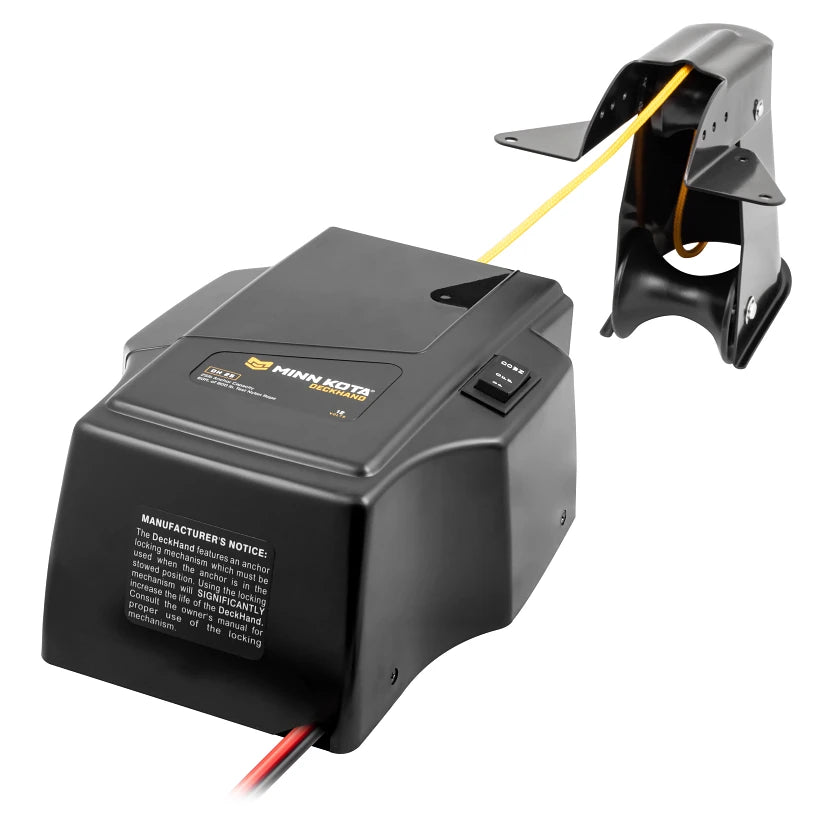 The DeckHand 25 has a 25-lb anchor capacity (anchor not included). Includes davit for stowing most styles of anchors. Pre-spooled with 60 feet of 800-lb test nylon rope. Runs on 12-volt battery (not included). Get precision boat placement and the ability to stay on the fish as long as you want with a DeckHand™ electric anchor winch. It automatically raises or lowers your anchor at the touch of a button, and its special anti-drag system senses the bottom to allow for controlled drifting.