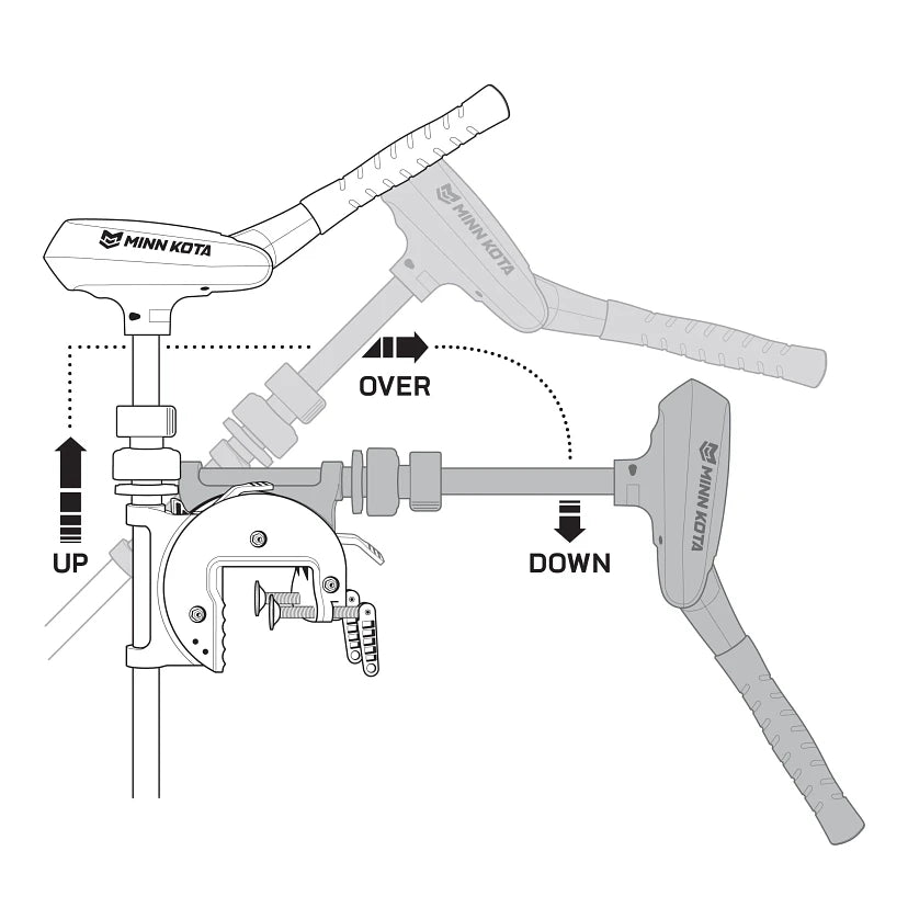 - One-Hand Stow Just pull up and forward to stow the motor with no buttons or release levers. Then when it's time to go, use the easy-access thumb release to deploy Traxxis into any of ten different positions.