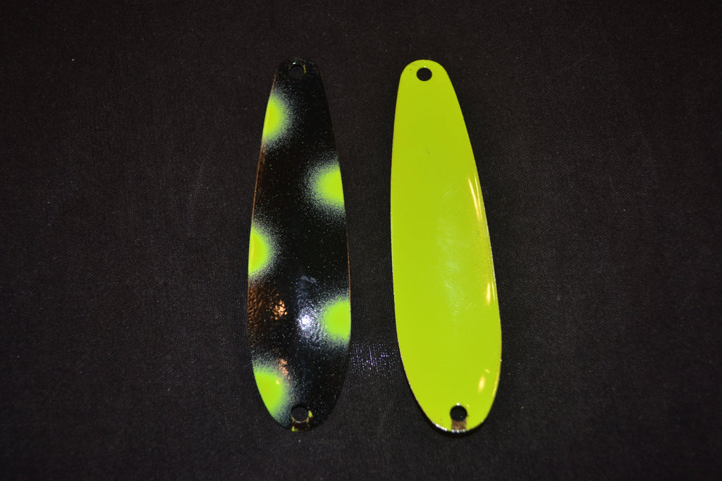 Discover a premium collection of expertly crafted trolling spoons designed to enhance your fishing experience. These 3 1/4" lures combine exceptional durability with eye-catching finishes, ensuring optimal attraction for a variety of fish species.